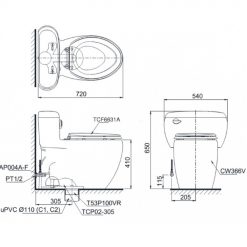 Bản vẽ bồn cầu MS366 nắp điện tử TCF6631 TOTO