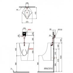 Bồn tiểu U0232 treo tường có thể lắp đặt với các van xả tiểu sau: BF412G, A652DC, A623, A624, A637, A648, A671, A672, A673 , A654