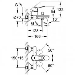 Bản vẽ kỹ thuật bộ trộn sen bồn tắm BauLoop Grohe 32815000