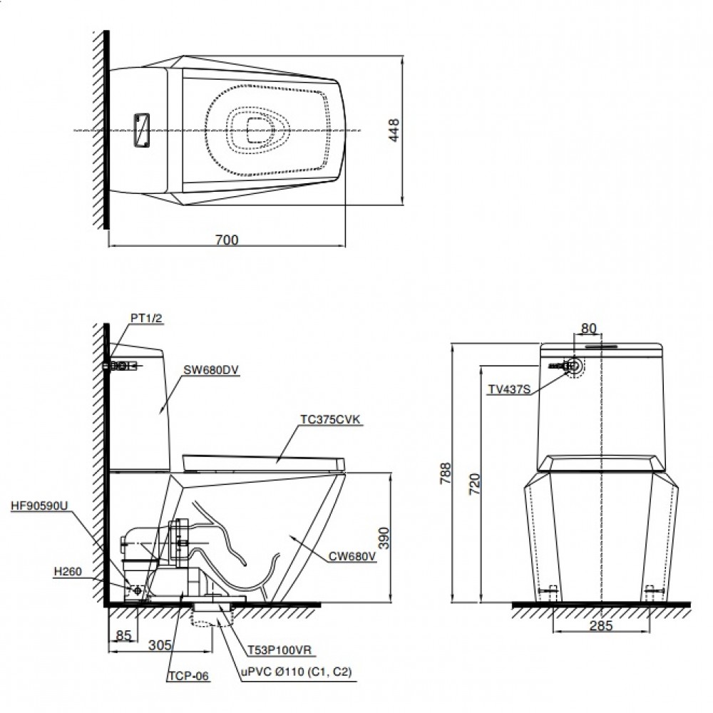 Thông số kỹ thuật bồn cầu CS680DT4