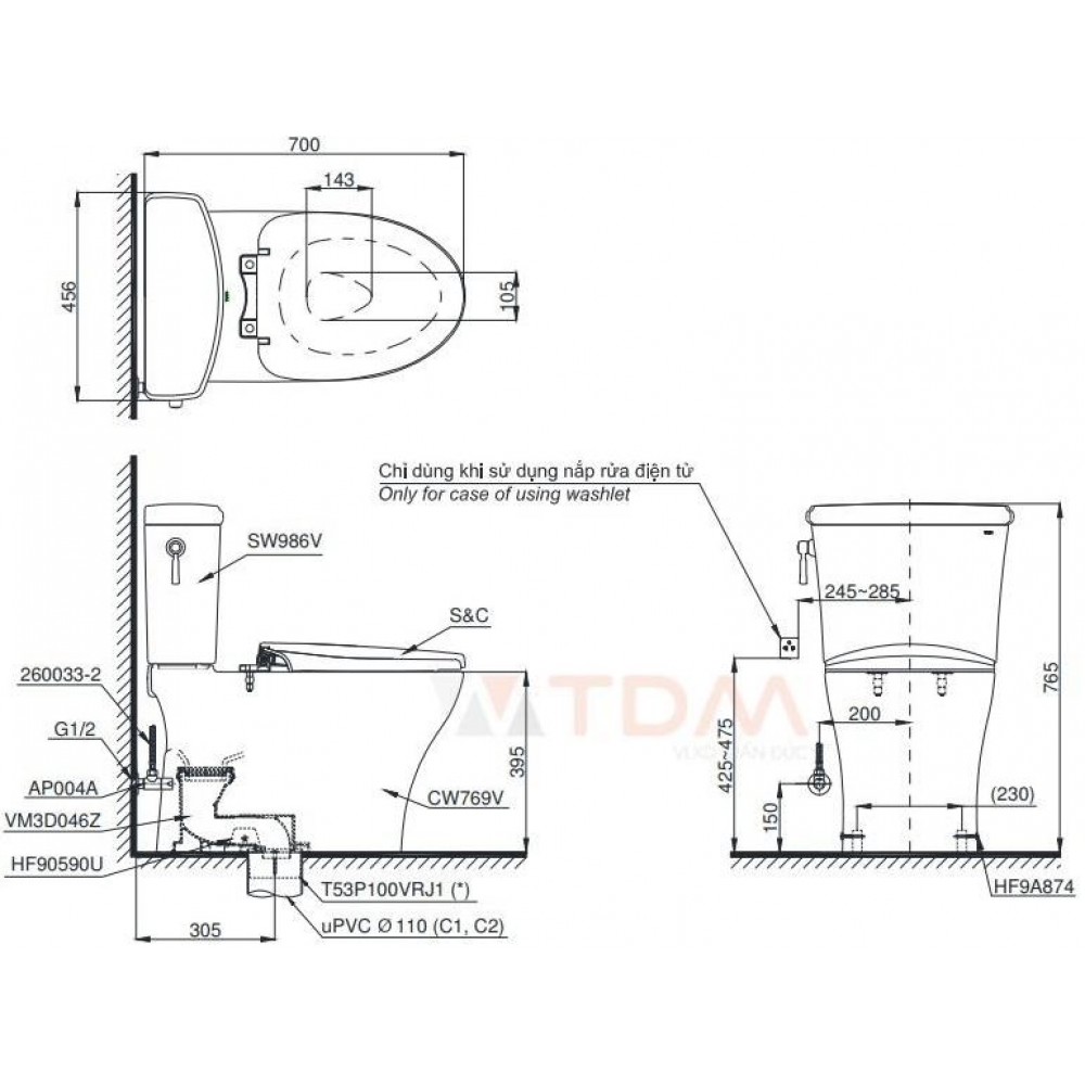 • Có thể kết hợp với các dòng nắp rửa điện tử nhằm nâng cao nhu cầu người dùng