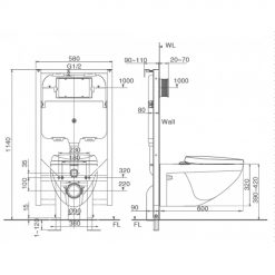 - Bàn cầu treo tường thoát ngang, két nước âm tường