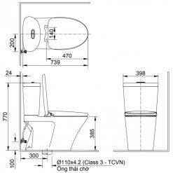 - Kích thước bồn cầu: 750 x 365 x 760 (dài x rộng x cao)