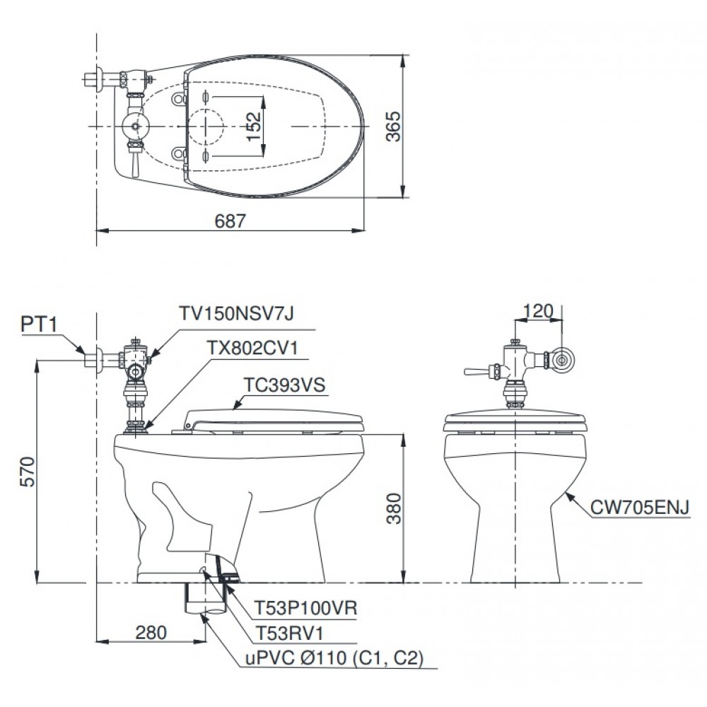 Bản vẽ kỹ thuật xí bệt CW705ENJ TV150NSV7J