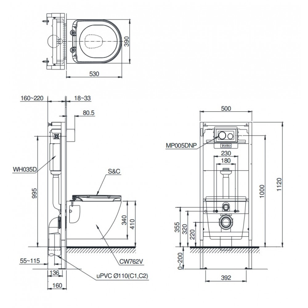 Bản vẽ kỹ thuật xí bệt CW762 WH035D MB005DCP: