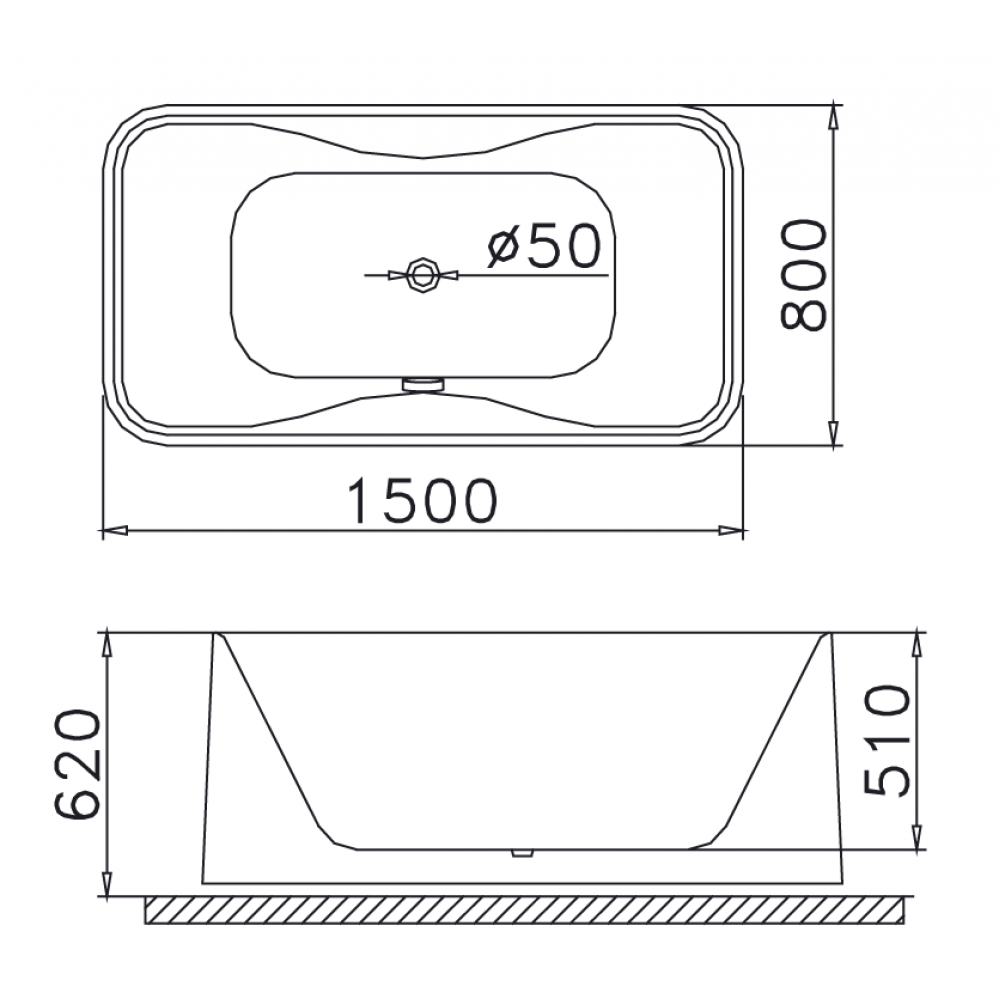 Bản vẽ kỹ thuật bồn tắm dài Caesar AT0950 1.5M