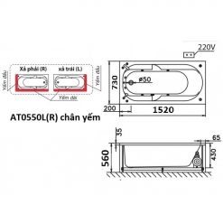 AT0550L bồn tắm xả trái, yếm phải