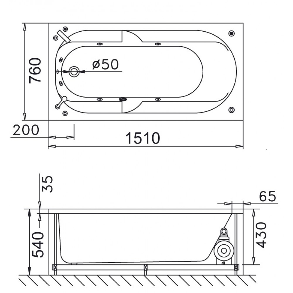 Bản vẽ kỹ thuật bồn tắm dài Caesar AT0350 1.5M