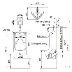 Bản vẽ bệ tiểu nam treo tường U411V INAX