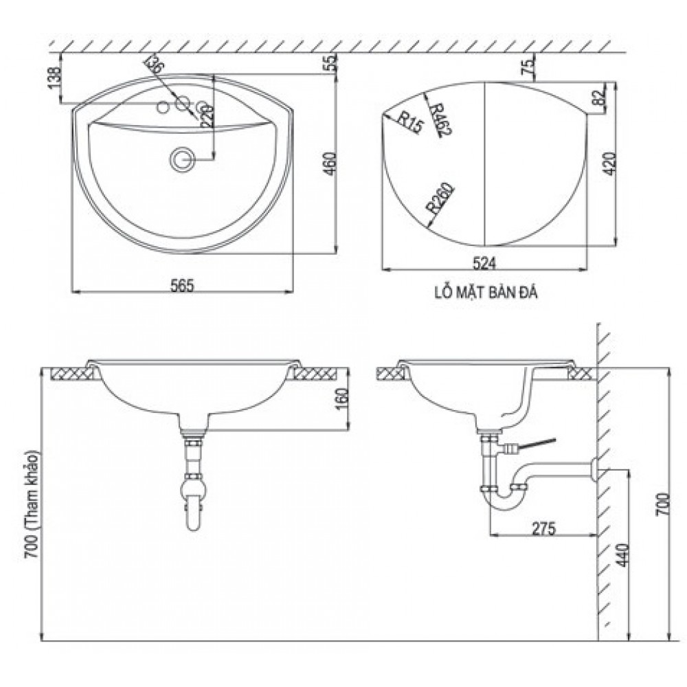Bản vẽ bồn rửa mặt lavabo INAX AL2396V