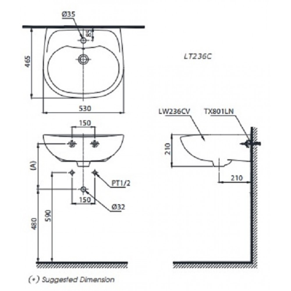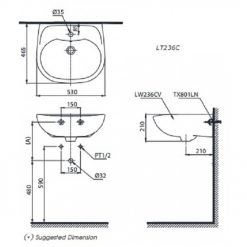 Bản vẽ bồn rửa mặt lavabo LT236CS TOTO