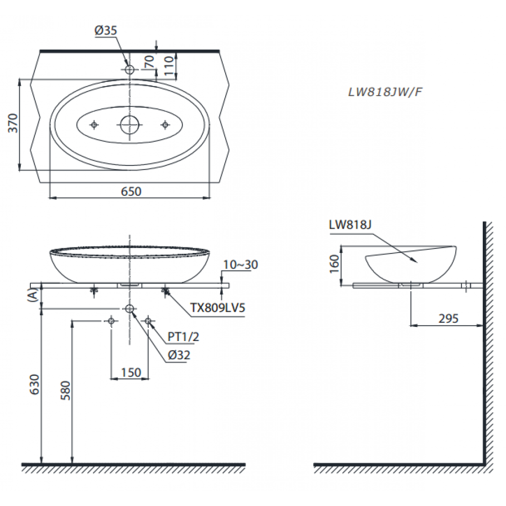 Thông tin cơ bản chậu rửa mặt lavabo TOTO LW818JW