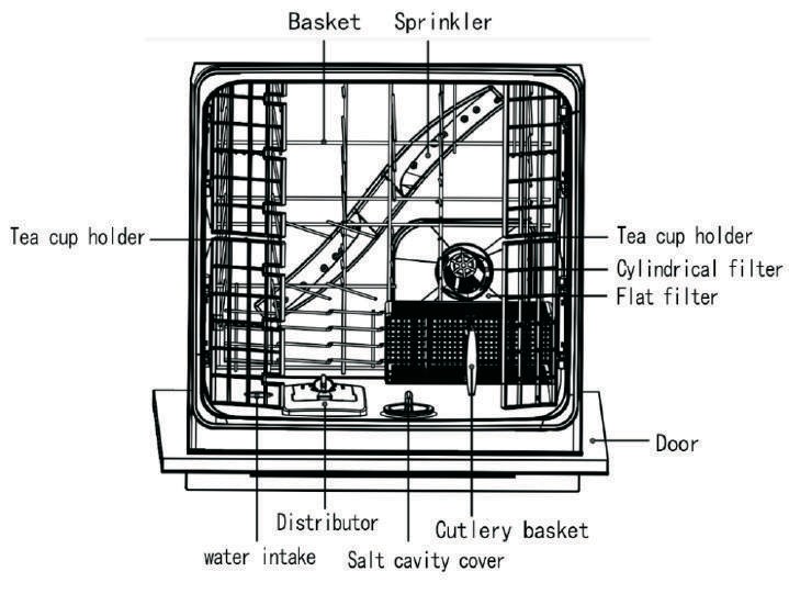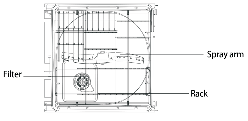 -Máy rửa chén chỉ được sử dụng khi động cơ, lưới lọc, bộ lọc và cánh tay phun được lắp đặt tại chỗ. Vui lòng xem các hình ảnh trong phần “Hướng dẫn lắp đặt và bảo trì” để biết thêm chi tiết.