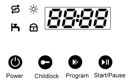 - Nếu mã “E02” hiển thị=>>Đảm bảo nguồn nước được kết nối và áp lực nước phù hợp, nhấn phím nguồn để loại bỏ tiếng ồn và nhấn phím ” ” để tiếp tục chương trình rửa.