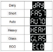 | Tự động | Nặng | Hằng ngày | Eco | Ngắn | Mỏng |