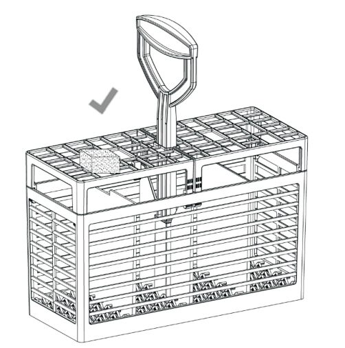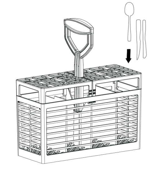 ●Để đặt chén dĩa vào máy rửa chén, cẩn thận không để làm trầy mặt trong của máy rửa chén, các vật sắc nhọn phải được đặt theo hướng lên trên để tránh gây thương tích.