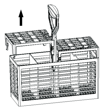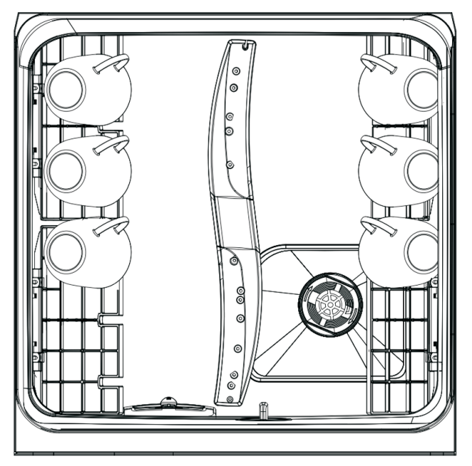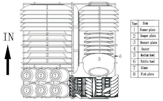 -Để đặt chén dĩa vào máy rửa chén hãy chú ý để tránh làm hỏng mặt trên, vì các chén dĩa hỗ trợ nằm ở mặt trên. Các chén dĩa sắp xếp trong máy rửa chén không được cao hơn ngăn kéo hoặc bị ép mạnh vì nguy cơ hư hỏng.