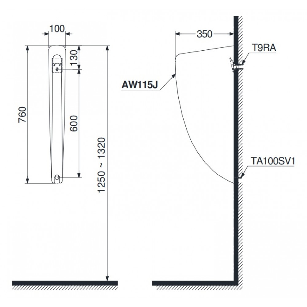 Thông tin cơ bản vách bồn tiểu TOTO AW115J