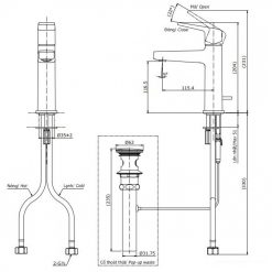 Bản vẽ kỹ thuật vòi nước TOTO nóng lạnh TLG10301V