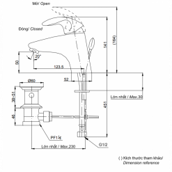 Bản vẽ kỹ thuật vòi chậu lavabo TOTO TX115LFBR