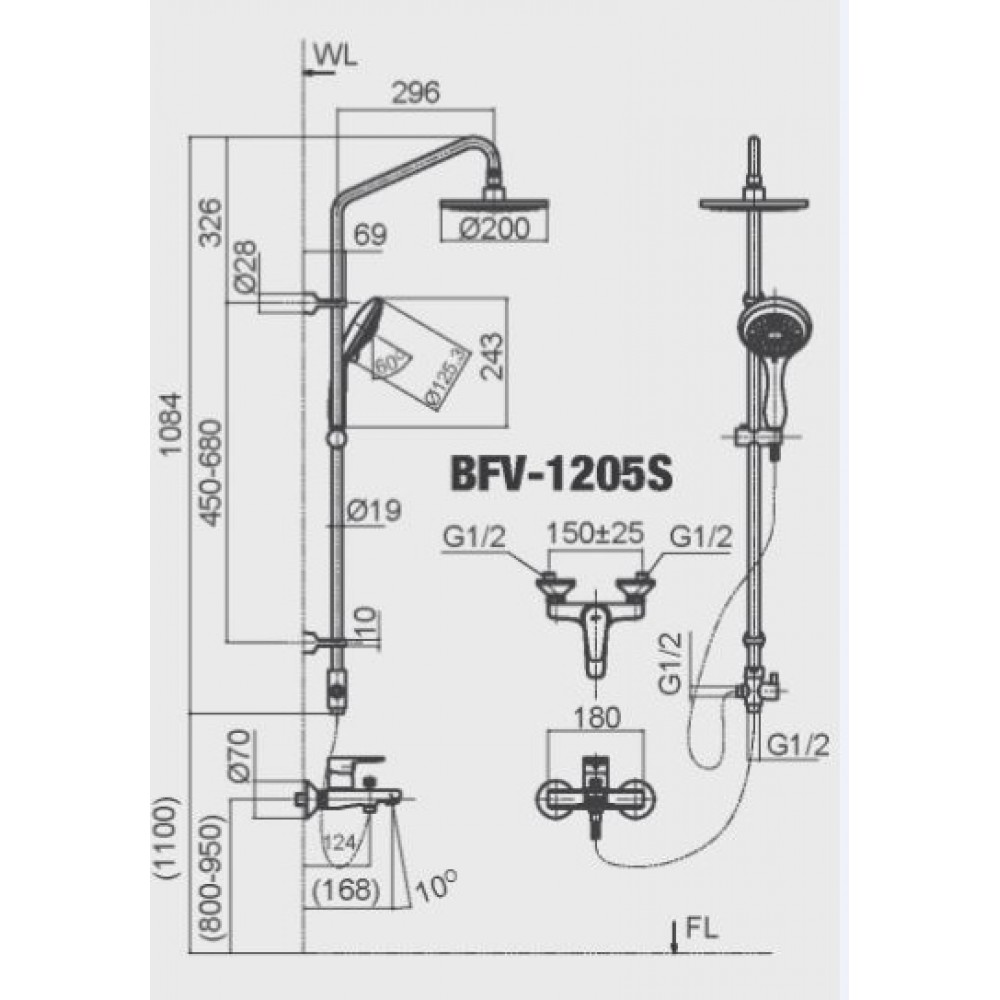 Bản vẽ kỹ thuật vòi sen cây INAX BFV-1205S