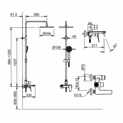 Bản vẽ kỹ thuật sen cây tắm nóng lạnh INAX BFV-515S
