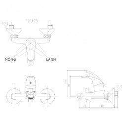 Bản vẽ kỹ thuật Vòi sen tắm nóng lạnh INAX BFV-1303S-4C