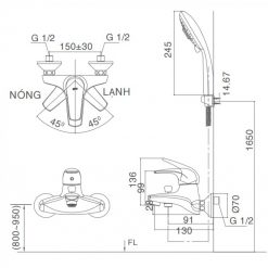 Bản vẽ kỹ thuật vòi sen tắm nóng lạnh INAX BFV-3003S-1C