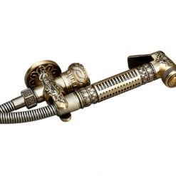 Vòi xịt rửa cổ điển đồng thau GCK23 được thiết kế kiểu hoa văn họa tiết cầu kỳ, mang phong cách sang trọng, hoàng gia, phù hợp cho không gian nội thất phòng tắm theo xu hướng cổ kính, tông màu nâu ấm.